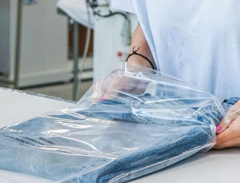 Servizio di imbustamento per capi di alta moda, garantendo qualità e attenzione ai dettagli.